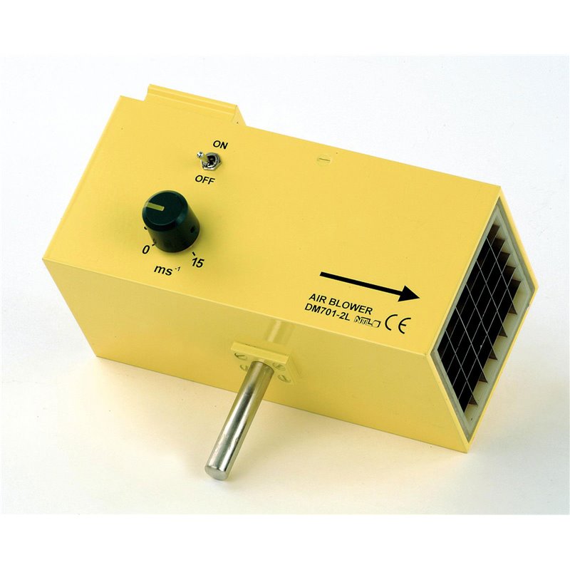 stufenlose Einstellung der Strömungsgeschwindigkeit 0 … ca. 15 m/s, Ein/Aus-Schalter,