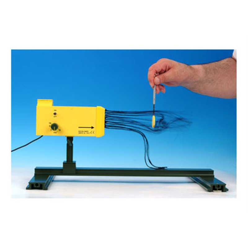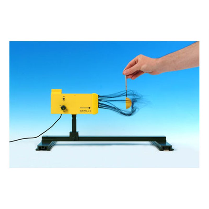 Zur Sichtbarmachung der Strömungslinien bzw. Turbulenzen um einen Körper im Luftstrahl;