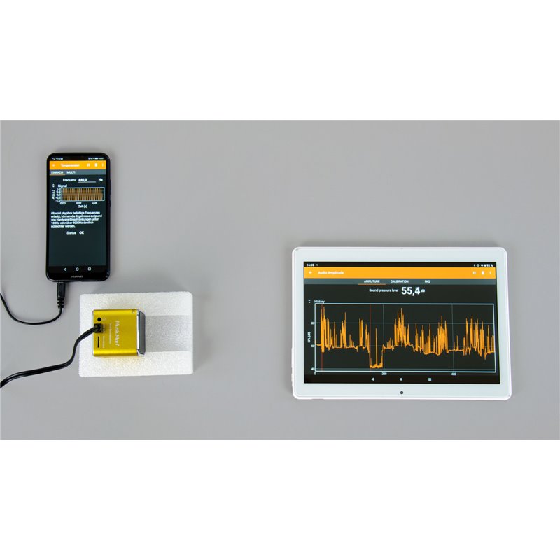 Schallquelle für Versuche zur Akustik; kompakter Lautsprecher für ein Mobiltelefon, Tablet, oder PC/Notebook (auch iPhone, iPad, iPod) ebenso für MP3Bedienungstasten für Wiedergabe/Pause, Lautstärke, Titel vor/zurück, Ein/Aus Schalter, robuster Gitterschutz für die Lautsprechermembran, Aluminiumgehäuse, metallicfarben Kabel zur Verbindung an ein mobiles Gerät sowie zum Aufladen des Akkusgerätegeformte Bodenplatte aus Kunststoff Technische Daten: Speicher: MicroSD Karte und USB-Stick (bis 32 GB) Anschlüsse: USB und 3,5 mm KlinkenbuchseStromversorgung: Lithium-Ionen Akku, 3,7V/600 mAh Wiedergabezeit: ca. 8 – 9 hAkku-Ladezeit: ca. 3 – 4 hStromversorgung: 5V DC (im Lieferumfang enthalten)Lautsprecher: Da=45 mm, 4 Ohm, 3 WattAbmessungen des Lautsprechers: 50 x 50 x 50 mmAbmessungen der Bodenplatte: 120 x 90 x 25 mmMasse des Lautsprechers: 107 gMasse des Komplettsets: 159 g