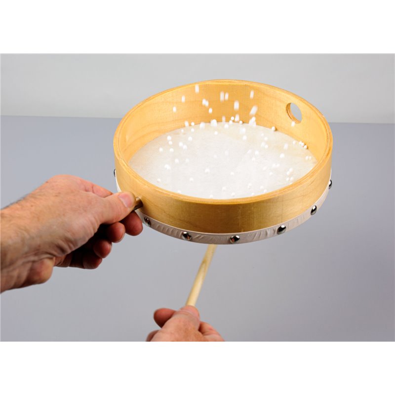 Zum Anschlagen von Trommeln;Schlägel mit Holzkugel und HolzgriffKugel-D: ca. 30 mmGesamtlänge: ca. 190 mmMasse: ca. 21 g