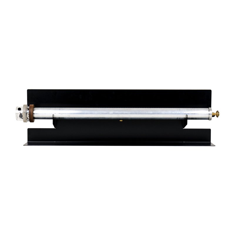 Halterung des Rohres auf einer schwarzen Boden- und Rückplatte zur kontrastreichen Erkennbarkeit der Flammenhöhen