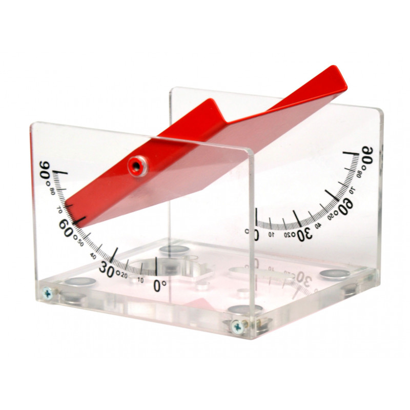 Zur Bestimmung der Leistung einer Solarzelle bzw. eines Solarmoduls in Abhängigkeit des Einfallswinkels des Lichtes; Klinometer bestehend aus einem Acrylglasgestell mit beidseitiger Winkelskala und einer schwenkbaren Metallplatte zur Aufnahme des Magnetbausteines compact (MBC) SolarzelleAbmessungen: 100 x 96 x 72 mmMasse: 233 gzusätzlich empfehlenswert: P3600-2A MBC Solarzelle doppelt