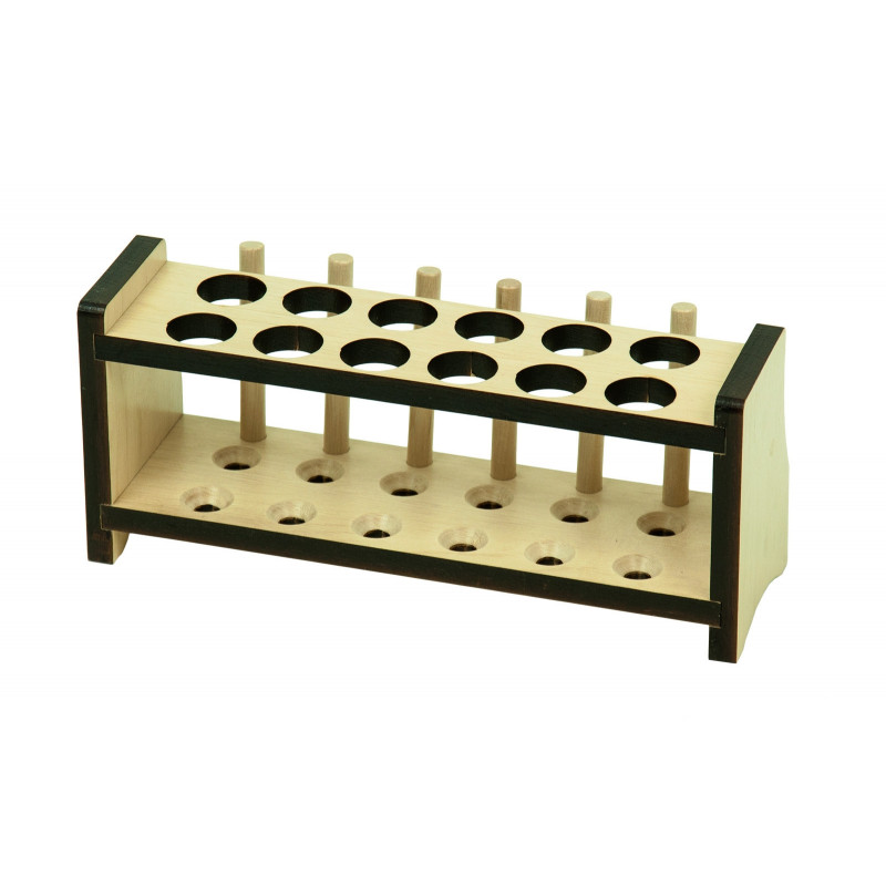 Reagenzglasgestell Holz, 12 Bohr., 6 Abtropfstäbe (Lt)
