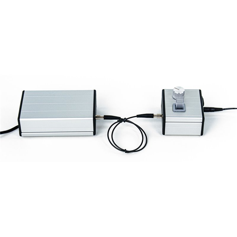 Zwei Lichtquellen in Gehäuse, Halogenlampe weiß und UV-LED (365 nm).