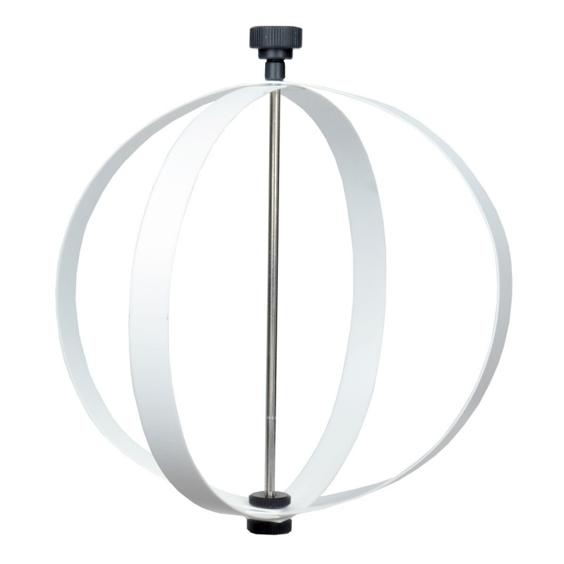 Zur Demonstration der Abplattung eines deformierbaren Körpers unter Einwirkung der Zentrifugalkraft (Modellversuch zur Abplattung der Erde durch deren Rotation); zwei gekreuzte Kunststoffreifen auf einer Drehachse mit Gewinde M3, aufzuschrauben auf den Magnetbaustein compact mit DrehlagerDurchmesser der Reifen: ca. 120 cmAbmessungen: 130 x 145 x 12 mm (Kunststoffstreifen zusammengeschoben)Masse: ca. 16 gzusätzlich erforderlich: P1345-1D MBC Drehlager mit Wellrad
