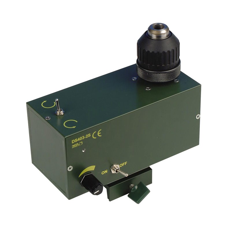 Umschalter für Rechts und Linkslauf, Ein/Aus-Schalter, Drehknopf zur stufenlosen Drehzahlregelung;