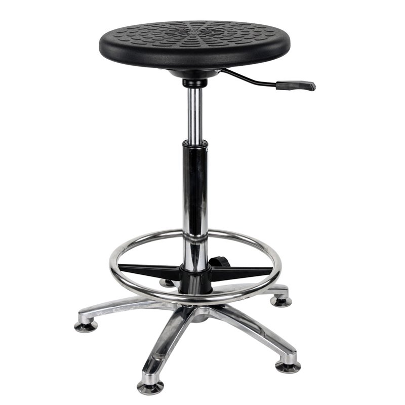 Sitzfläche sehr reibungsarm kugelgelagert, aus strapazierfähigem PUR-Schaum (leicht zu reinigen),