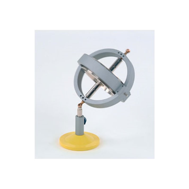 Zur Demonstration der Eigenschaften eines freien Kreisels und auch dessen Präzessionsbewegungen; schwerer zylindrischer Kreisel mit kardanischer Aufhängung, lange Laufzeit durch Achsenlager aus Beryllium-Bronze; Lieferung mit fixer Gabel auf H-Fuß klein mit Nivellierschrauben (zur Lagerung für Antrieb mit Schnur), flexibler Metallgabel mit doppelt kugelgelagerter Stativstange, Rundfuß, Stativstange mit Lagerpfanne und Spitze, Antriebsschnur mit Haltegriff