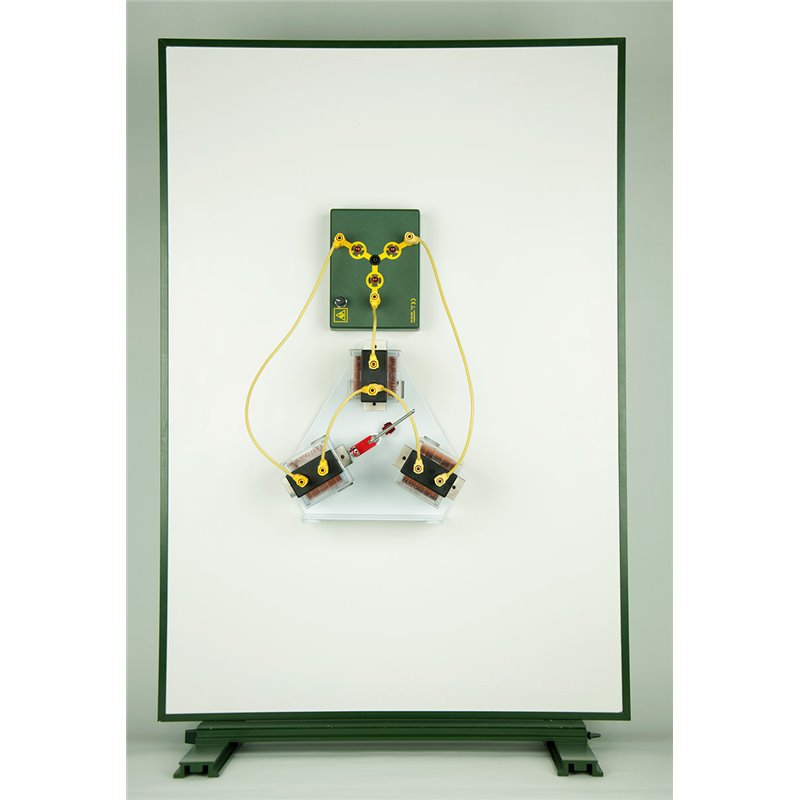 Robuste Metallplatte mit drei Steckerstift-Paaren zum Aufstecken der Spulen Demo mit Eisenkern,