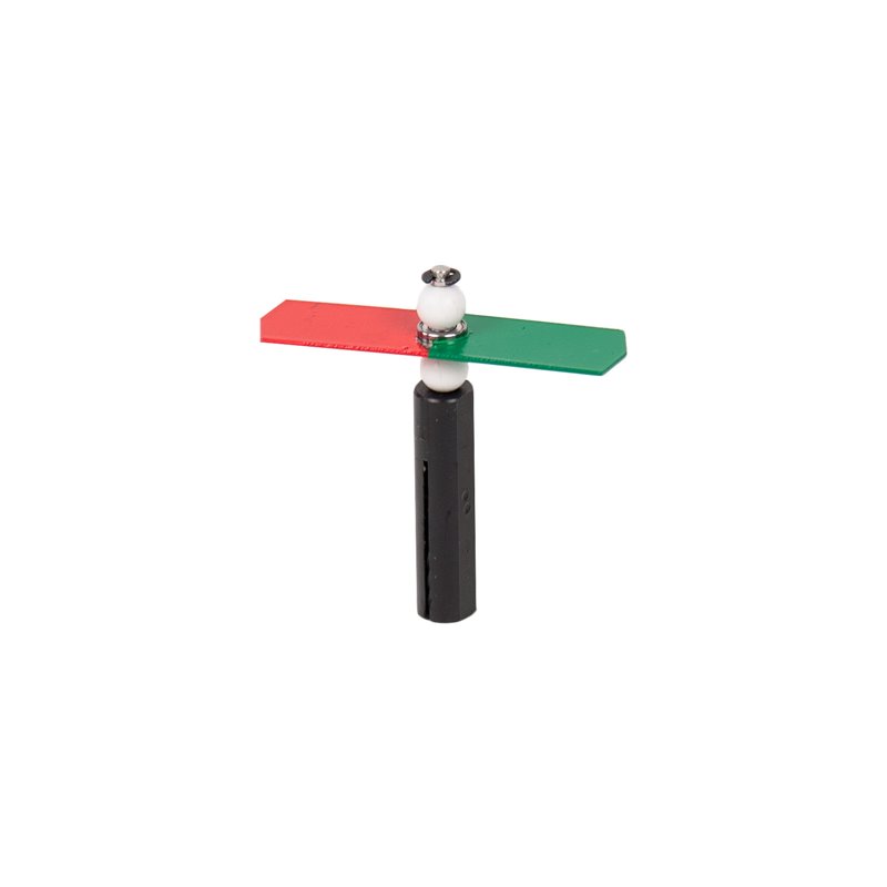 Kugelgelagerte Magnetnadel, rot/grün beschichtet, auf Metallachse mit Klemmeinsatz;