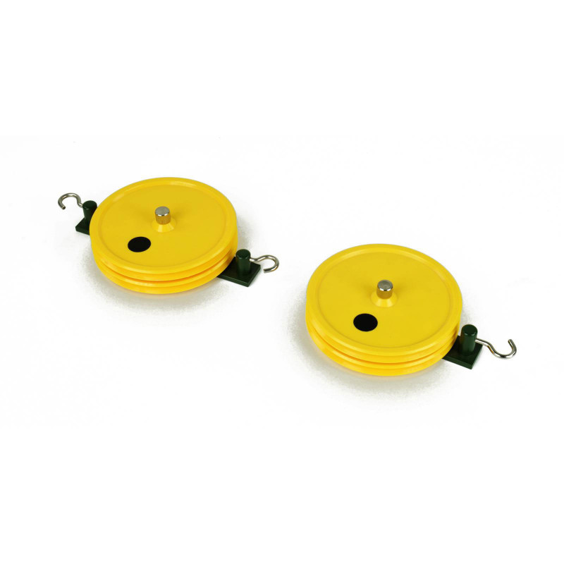 Demonstrations-Flaschenzug mit je zwei parallel angeordneten Rollen je Flasche;