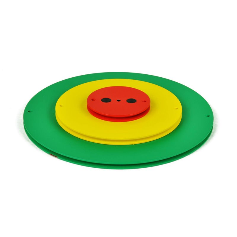 Drei verschiedenfärbige, gekoppelte Scheiben mit Schnurrille,
