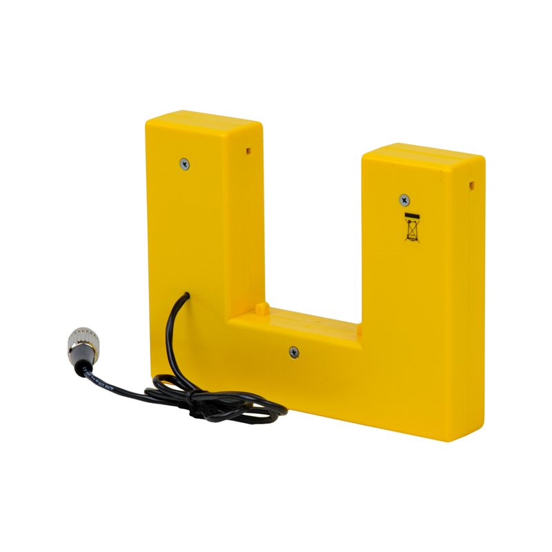 mit Bohrung und Knebelschraube zur Halterung an Rundmaterial bis max. 10 mm Durchmesser, Signalausgang und Stromversorgung über 3-polige DIN-Buchse