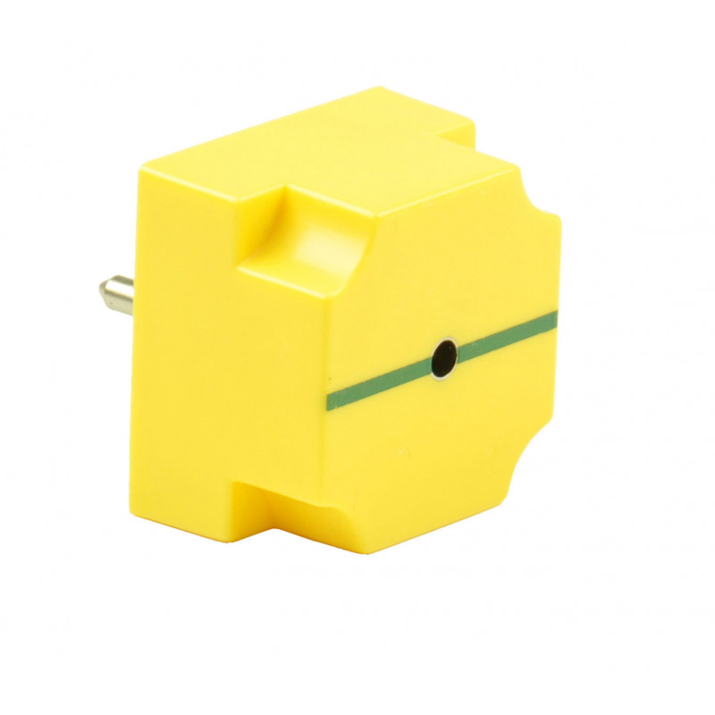 Steckbausteinsystem Schülerveruche Elektrik, Elektromagnetismus, Elektronik, Steckbaustein (STB) Leitung gerade mit Buchse;robustes Kunststoffgehäuse mit transparenter Bodenplatte, der Bauteil ist daher gut sichtbar und ebenso vor mechanischen Schäden geschützt, die Bodenplatte ist mit Kreuzschlitzschrauben festgeschraubt, kaputte Bauteile können daher sehr rasch und einfach repariert bzw. ersetzt werden, siebbedruckte Leitungen und Schaltsymbole schaffen ein eindeutig erkennbares Schaltschema eines Versuchaufbaus, robuste 4-mm Steckerstifte ermöglichen eine sichere elektische Steckverbindung mit den Metallplättchen der Steckplatte4-mm-Abgreifbuchse, Bodenplatte mit zwei SteckerstiftenAbstand der Steckerstifte: 19 mmMaterial (Oberteil): Kunststoff ABS, gelbMaterial (Steckerstifte): Messing, vernickeltMaterial (Steckbuchse): Messing, vernickeltAbmessungen: 40 x 40 x 27(41) mmMasse: 23 g