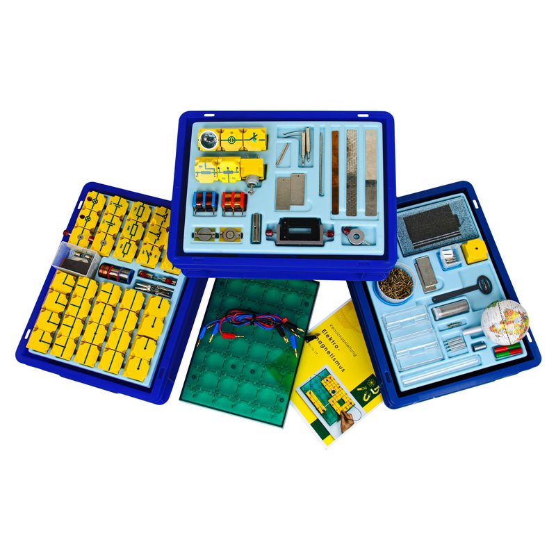 Schülerversuchs-Gerätesatz zur Durchführung von 38 Versuchen aus der Elektrizitätslehre - Elektromagnetismus zu den Themen: