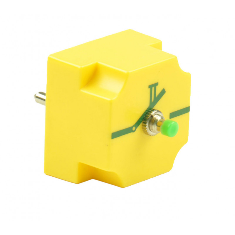 Steckbausteinsystem Schülerveruche Elektrik, Elektromagnetismus, Elektronik, Steckbaustein (STB) mit Taster (Ein-Schalter oder Schließer); robustes Kunststoffgehäuse mit transparenter Bodenplatte, der Bauteil ist daher gut sichtbar und ebenso vor mechanischen Schäden geschützt, die Bodenplatte ist mit Kreuzschlitzschrauben festgeschraubt, kaputte Bauteile können daher sehr rasch und einfach repariert bzw. ersetzt werden, siebbedruckte Leitungen und Schaltsymbole schaffen ein eindeutig erkennbares Schaltschema eines Versuchsaufbaus, robuste 4-mm Steckerstifte ermöglichen eine sichere elektische Steckverbindung mit den Metallplättchen der SteckplatteBodenplatte mit zwei SteckerstiftenAbstand der Steckerstifte: 19 mmSchalter: Knebelschalter MetallMaterial (Oberteil): Kunststoff ABS, gelbMaterial (Steckerstifte): Messing, vernickeltAbmessungen: 40 x 40 x 27(49) mmMasse: 24 g