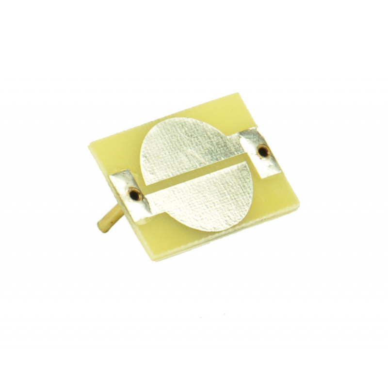 Für Versuche zum Motor und Generator im Schülerversuch, die Kommutatorscheibe wird dabei auf die Spule 800 Windungen aufgesteckt und mit dem I-Kern als Rotor verwendet; Leiterplatte mit zwei Kommutator-Halbkreisflächen, zwei Anschlussbuchsen für die Spule SEMaterial: LeiterplattenmaterialBuchsen: 2,5 x 12 mm, MessingAbmessungen: 38 x 26 x 12 mmMasse: 3 g