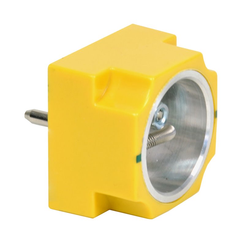 Steckbausteinsystem Schülerveruche Elektrik, Elektromagnetismus, Elektronik, Steckbaustein (STB) mit Heizwendel; robustes Kunststoffgehäuse mit transparenter Bodenplatte, der Bauteil ist daher gut sichtbar und ebenso vor mechanischen Schäden geschützt, die Bodenplatte ist mit Kreuzschlitzschrauben festgeschraubt, kaputte Bauteile können daher sehr rasch und einfach repariert bzw. ersetzt werden, siebbedruckte Leitungen und Schaltsymbole schaffen ein eindeutig erkennbares Schaltschema eines Versuchsaufbaus, robuste 4-mm Steckerstifte ermöglichen eine sichere elektische Steckverbindung mit den Metallplättchen der Steckplatte, Heizspirale direkt auf die Steckerstifte montiert, Metallring zur Abschirmung der Wärme zum GehäuseBodenplatte mit zwei SteckerstiftenAbstand der Steckerstifte: 19 mmMaterial (Oberteil): Kunststoff ABS, gelbMaterial (Heizspirale): WiderstandsdrahtMaterial (Steckerstifte): Messing, vernickeltAbmessungen: 40 x 40 x 27(41) mmMasse: 37 g