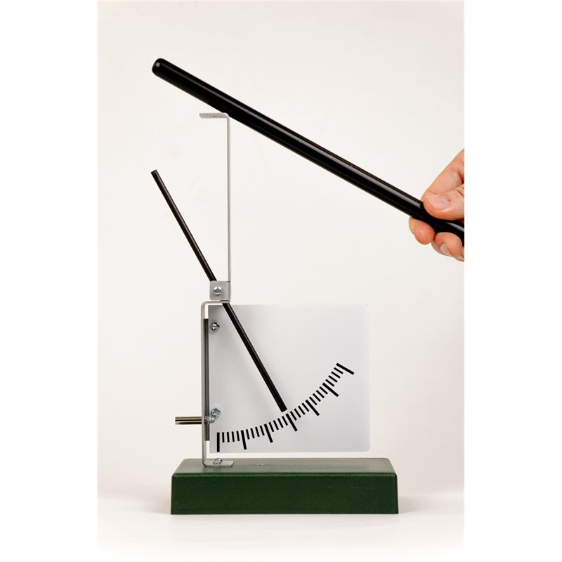 große Skala mit 30 Teilstrichen (je 2°) zur quantitativen Ablesung des Zeigerausschlags, großer Standfuß aus Kunststoff.