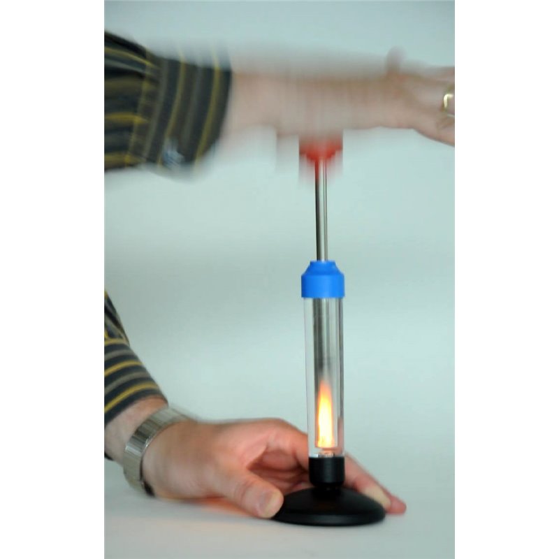 durch starke Kompression wird eine geringe Menge Watte entzündet;