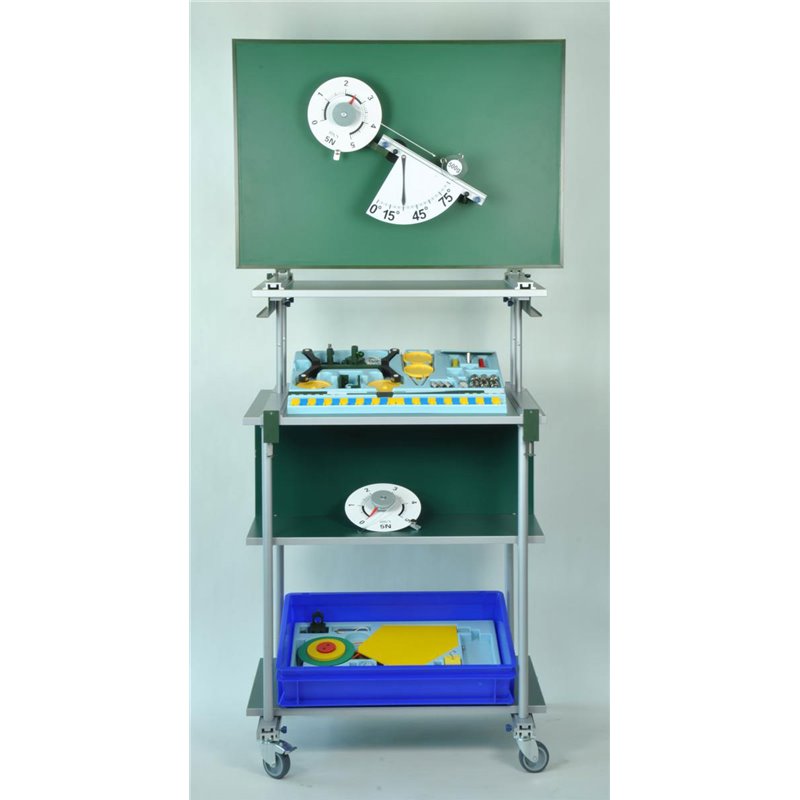 aufzustellen am Lehrertisch oder auch am Experimentiertisch fahrbar und mit Schraubzwingen dort zu fixieren;