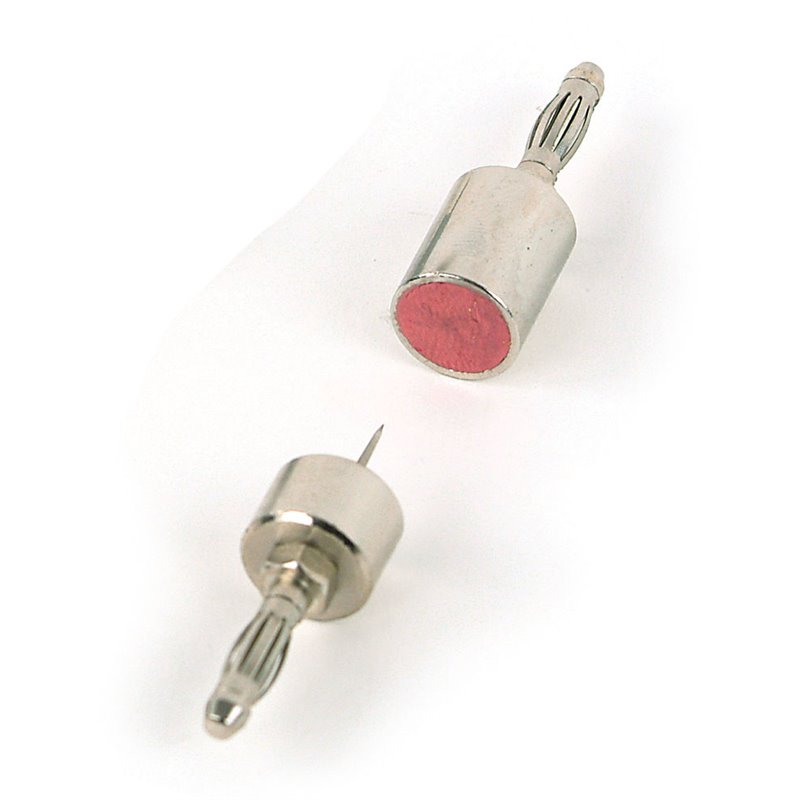 Zur Demonstration des unelastischen Stoßes mit zwei Messwagen oder mit den Gleitern der Luftkissenfahrbahn; Ein Aufsatz mit Metallhohlzylinder gefüllt mit Plastilin, zweiter Aufsatz mit Nadel, jeweils mit 4 mm-Steckerstift, aufsteckbar auf MesswagenAbmessungen: D=12 mm, L=65 mmMasse: ca. 20 gzusätzlich empfehlenswert:2 x P1311-2A Messwagen