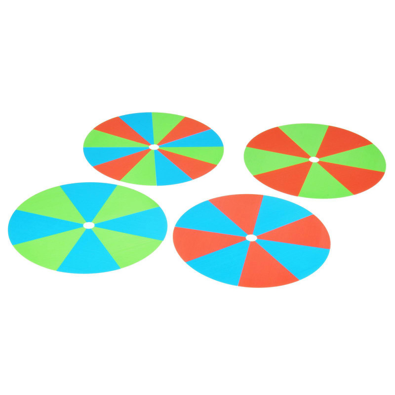 Satz von 4 Farbscheiben; zur Demonstration der Farbmischung aus den additiven Grundfarben durch Rotation;