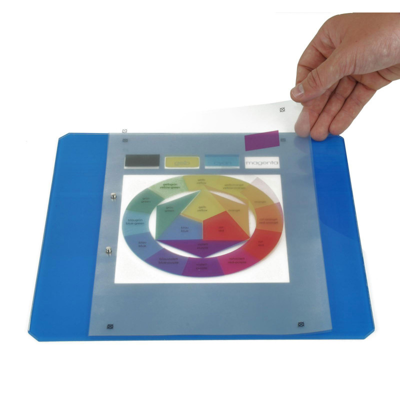 Durch Überlagerung der Folien kann das Prinzip des Vierfarbendruckes (Druckmaschinen oder Farbkopierer) demonstriert werden;
