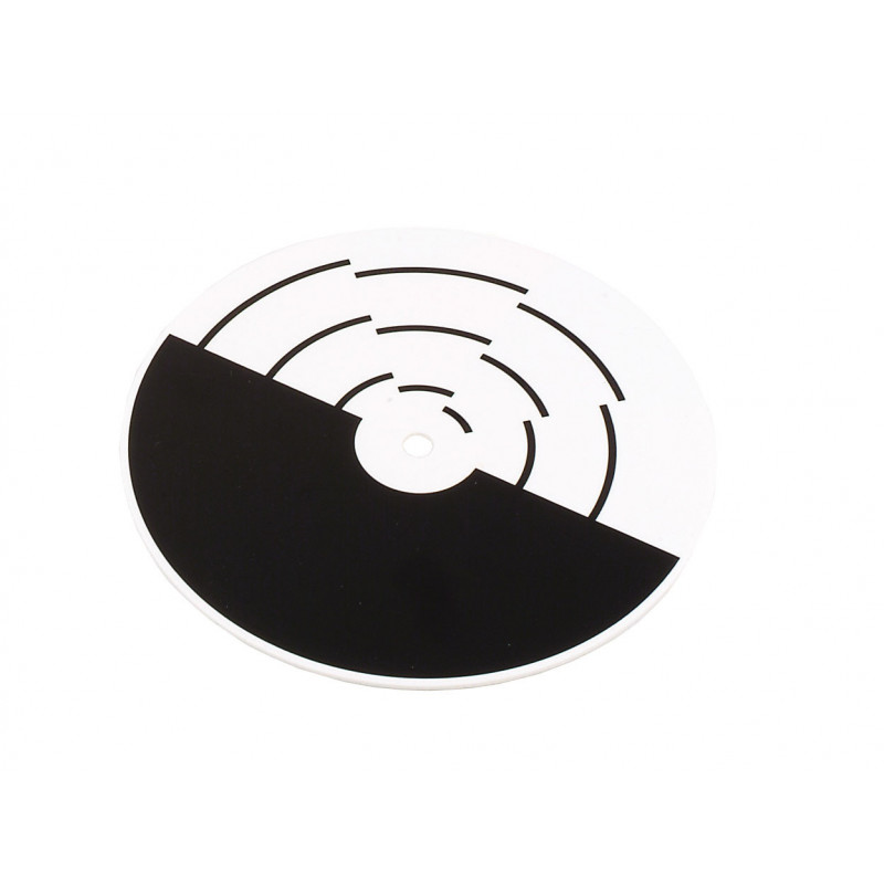 durch Rotation der Scheibe werden durch den raschen Wechsel von Schwarz und Weiß Farbstreifen vorgetäuscht;