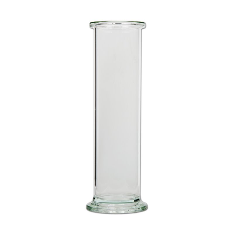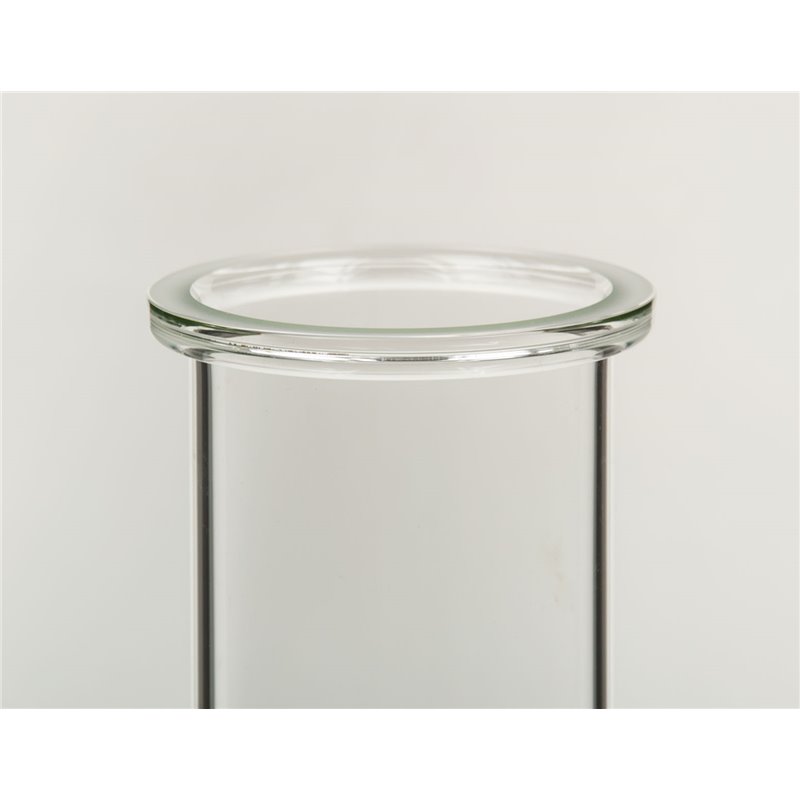 Dickwandiger Standzylinder mit umgelegtem (breitem) und geschliffenem Rand zum Auflegen einer geschliffenen Glasplatte, zum Auffangen von Gasen; H= 315 mm, Da= 80 mmFüllvolumen: ca. 1100 ml