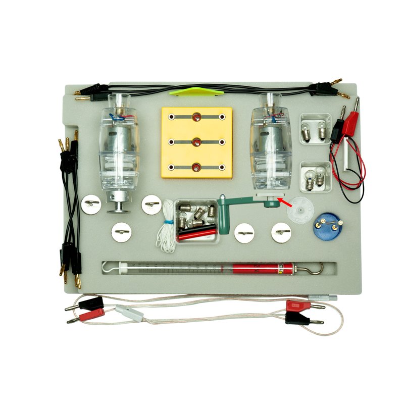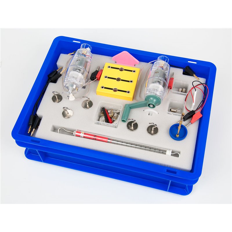 Schülerversuchs-Gerätesatz zur Durchführung von 13 Versuchen aus der Elektrizitätslehre - Leistung, Arbeit und Wirkungsgrad zu den Themen: