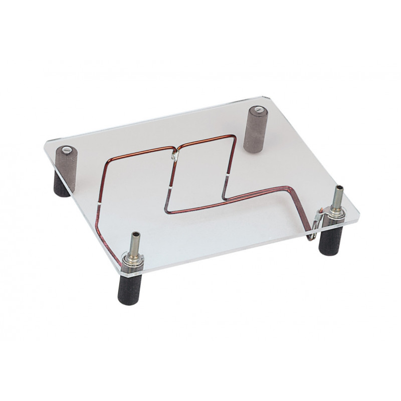 Zur Demonstration des Magnetfeldes zweier parallelen, gleichsinnig stromdurchflossenen geraden Leiter auf dem Overheadprojektor; zwei 4mm-Buchsen zur Stromzuführung,