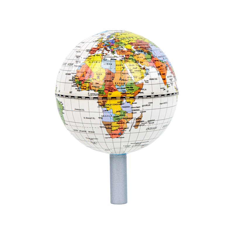 Zur Veranschaulichung des Magnetfeldes um die Erde sowie zur Demonstration der Inklination;Farbiger, politischer Globus, aus robustem Kunststoff, Beschriftung in Englisch, die verlängerte Hülse zur Einbringung des Magneten 10 x 50 mm dient als Griff (Lieferung ohne Magnet)Globus-Durchmesser: 85 mmGriff (Stiel): D=12 mm, L=40 mmMasse: ca. 43 gZusätzlich erforderlich:1 x P3410-1K Rundstabmagnet, AlNiCo, 10 x 50 mm1 x P3410-2C Magnetfeldsonde - SE
