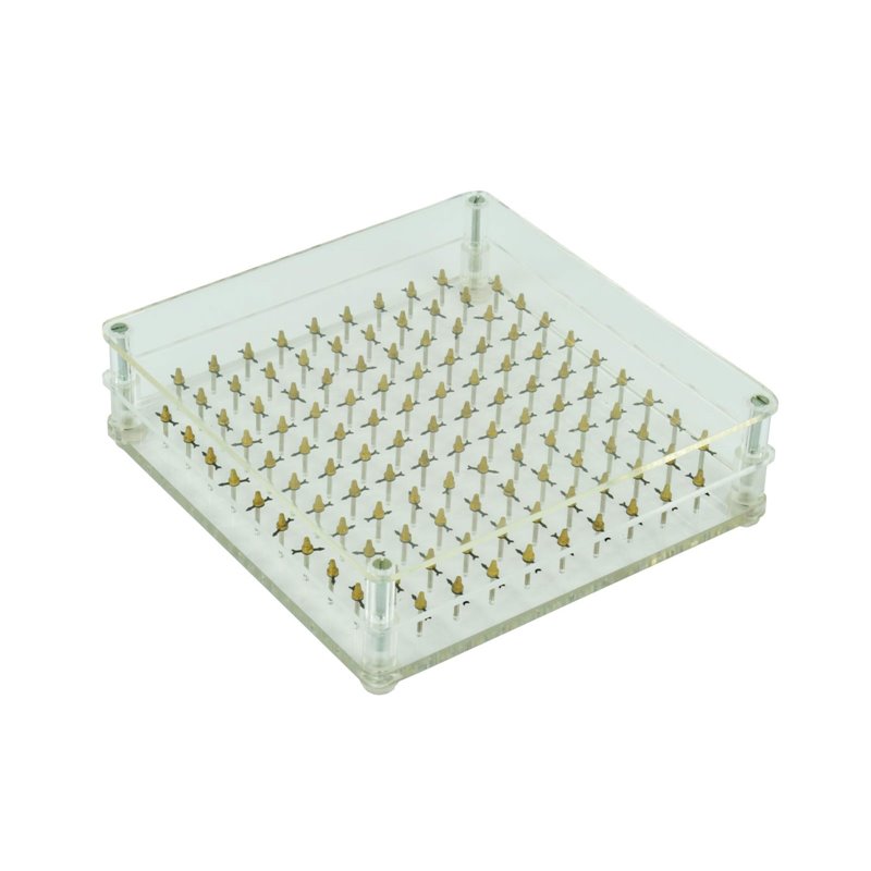 117 spitzengelagerte, pfeilförmige Magnetnadeln zwischen 2 Acrylglasplatten montiert,