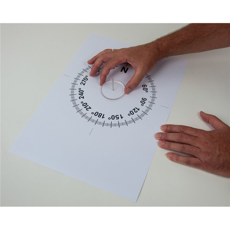 Karton mit 360° - Skala und Kennung der Nord – Richtung;