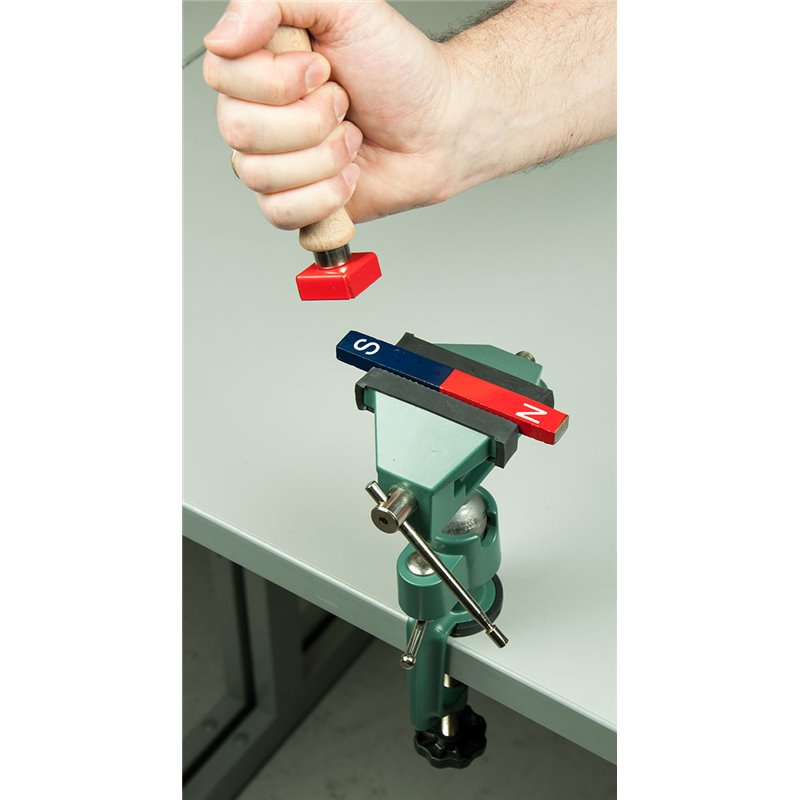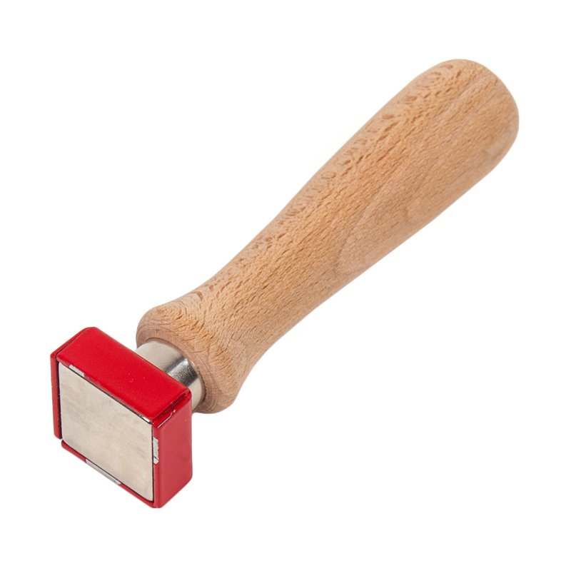 Neodymium Magnet: 25 x 25 x 10 mm, in Metallmantel, mit Holzgriff