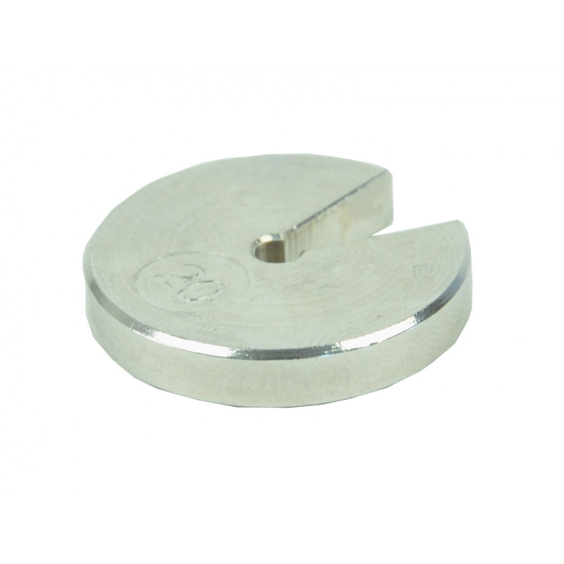 Auf den Teller aufgesteckt kann mit Massestücken dieser Art sehr rasch ein kompaktes, genaues "Massepaket" hergestellt werden; präzises Scheibengewicht aus Stahl, ein keilförmige Schlitz ermöglicht ein einfaches und schnelles Aufsetzen mehrerer Scheibengewichte auf den Teller, die mittige Bohrung den sicheren Halt auf dessen Stiel, geätzte Massenangabe Material: Stahl vernickeltToleranz: ±1 % Abmessungen: D= 28 mm, H= 5 mmMasse: 20 gzusätzlich empfehlenswert:P1120-2C Teller für Schlitzgewichte, 10 g, SE