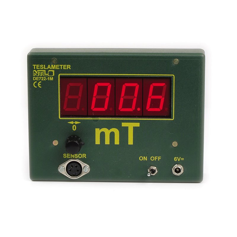 Demonstrations-Messinstrument zur Messung magnetischer Kraftflussdichten durch eine Axial- oder Tangential- Magnetfeldsonde; das Gerät ist sehr handlich und magnethaftend; die 26-mm-hohe LED-Anzeige erlaubt eine Ablesung auch aus größerer Entfernung