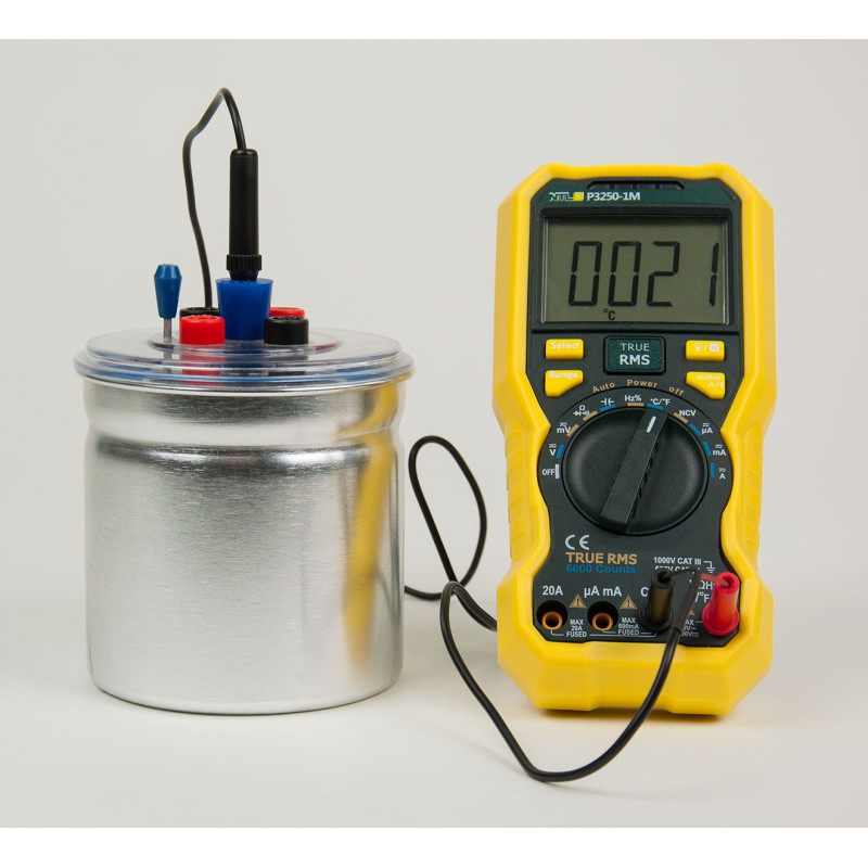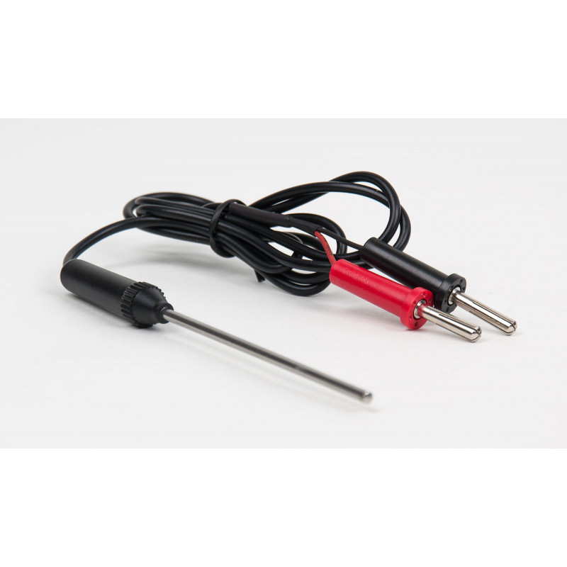Zur Aufnahme der Temperatur in Gasen oder Flüssigkeiten; einfacher Temperatursensor aus rostfreiem Stahl, mit Handgriff, zum Anschluss an ein Digitalmultimeter; Technische Daten:Messbereich: -50 ... +700 °C (-58 ... +1292 °F)Messgenauigkeit: +/-2,5 °C (im Bereich von -10 bis 400 °C)Ansprechzeit: < 10 sAnschluss: zwei 4-mm LaborsteckerEintauchtiefe: mind. 40 mmAbmessungen der Lanze: L=90 mm, D=3 mmGesamtlänge mit Griff: 135 mmMasse: ca. 21 gzusätzlich erforderlich:P3245-1M Multimeter digital, True RMSoderP3250-1M Mulitmeter digital "BT", True RMS