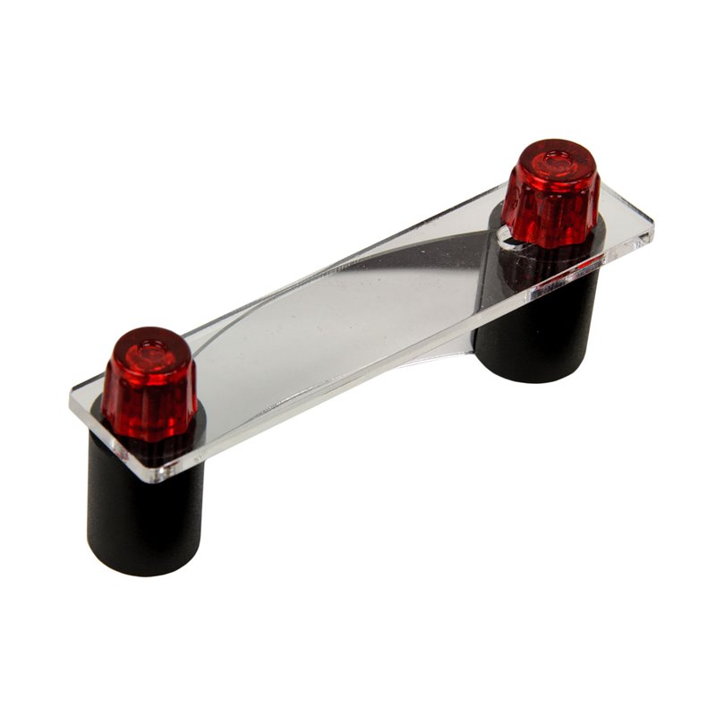 Für Versuche zur Reflexion, zur Bildkonstruktion und zur Abbildung eines Punktes am Hohlspiegel und auch am Wölbspiegel; flexible Spiegelfolie, montiert zwischen zwei Säulen, die Distanz der Säulen kann verstellt und arretiert werden, wodurch Konkavspiegel oder Konvexspiegel mit beliebigen Brennweiten eingestellt werden können Spiegelfläche: ca. 58 x 20 mmAbmessungen: 90 x 20 x 32 mmMasse: ca. 31 g