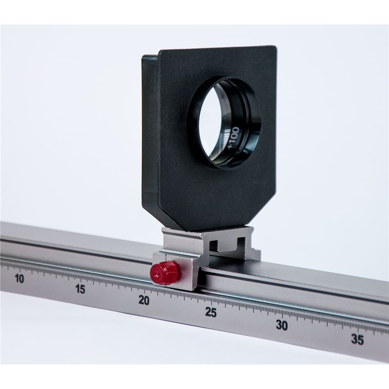 Für Versuche zu optischen Instrumenten, Linsengesetze und noch viele mehr; Sammellinse aus qualitativ hochwertigem Glas, montiert in Optik-Fassung SELinsenmaterial: optisches GlasFokuslänge: Fl = +100 mmLinsendurchmesser: 50 mmAbmessungen: D= 53 mm, H= 27 mmMaterial der Optik-Fassung: Polyamid glasfaserverstärkt, schwarzMasse: ca. 37 gzusätzlich empfehlenswert:P5310-2A Linsen- und Blendenhalter