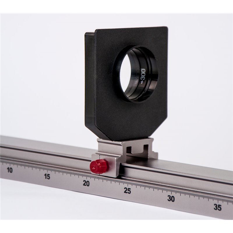 Für Versuche zu optischen Instrumenten, Linsengesetze und noch viele mehr; Sammellinse aus qualitativ hochwertigem Glas, montiert in Optik-Fassung SELinsenmaterial: optisches GlasFokuslänge: Fl = +300 mmLinsendurchmesser: 50 mmAbmessungen: D= 53 mm, H= 27 mmMaterial der Optik-Fassung: Polyamid glasfaserverstärkt, schwarzMasse: ca. 31 gzusätzlich empfehlenswert:P5310-2A Linsen- und Blendenhalter