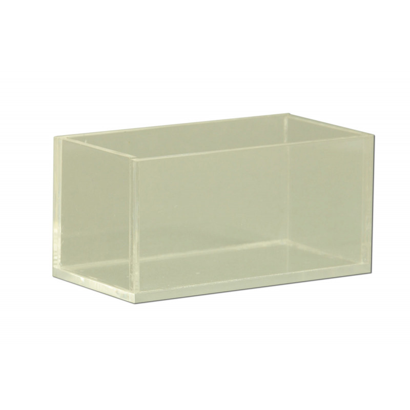 Zum Einbringen eines flüssigen Mediums in die optische Achse, zur Drehung der Polarisationsebene beim Sachharimeter-Modell; Wassertrog aus Acrylglas Abmessungen: 86 x 46 x 43 mmMasse: ca. 50 g