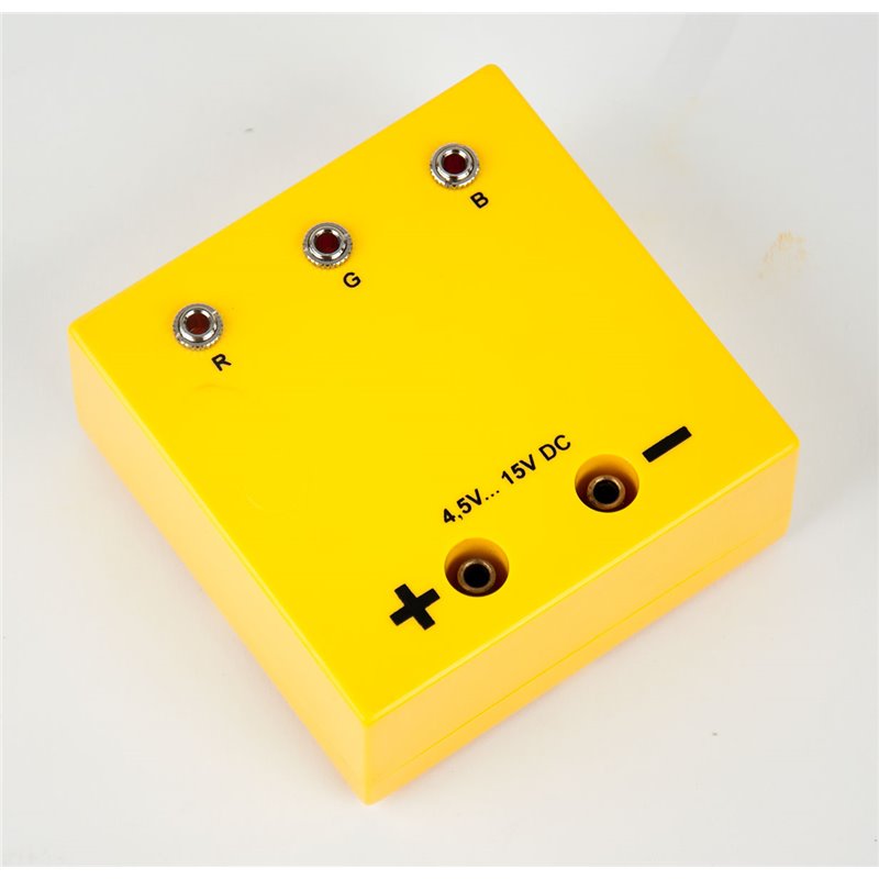 Ersatzteil:verpolungs- und überspannungssicherer Versorgungsbaustein für drei DiodenleuchtenSpannungseingang: 4,5 … 15 V DC über zwei 4-mm-BuchsenAbmessungen: 84 x 84 x 39 mmMasse: ca. 75 g