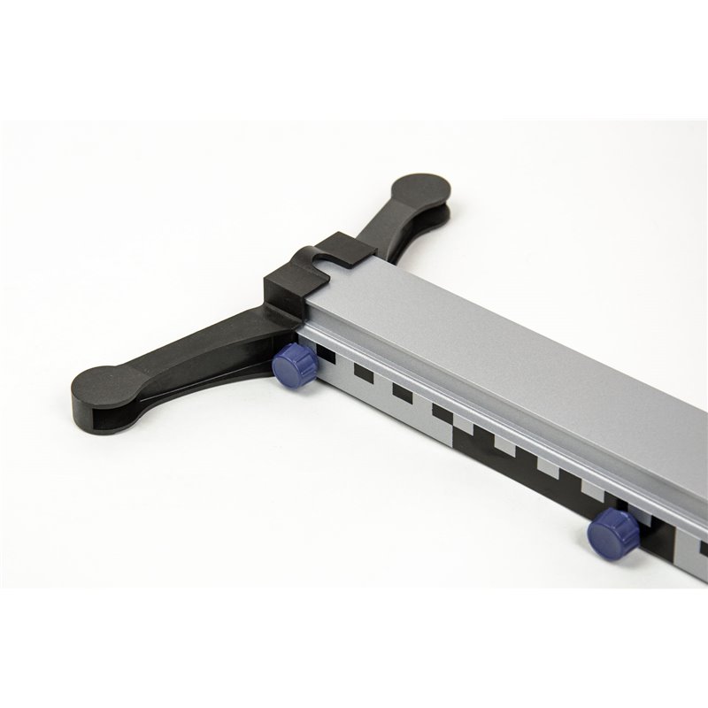 seitliche Klemmschrauben zur Verlängerung mittels Schienenverbinder oder Gelenk mit Winkelskala