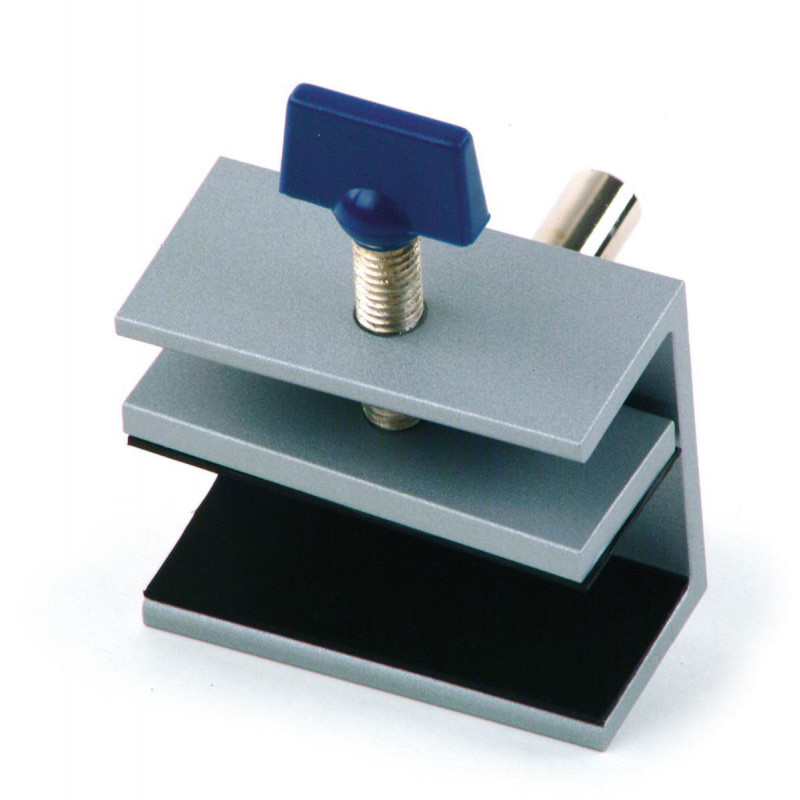 ein gummierter Klemmbacken ermöglicht einen sicheren, jedoch oberflächenschonenden Halt;