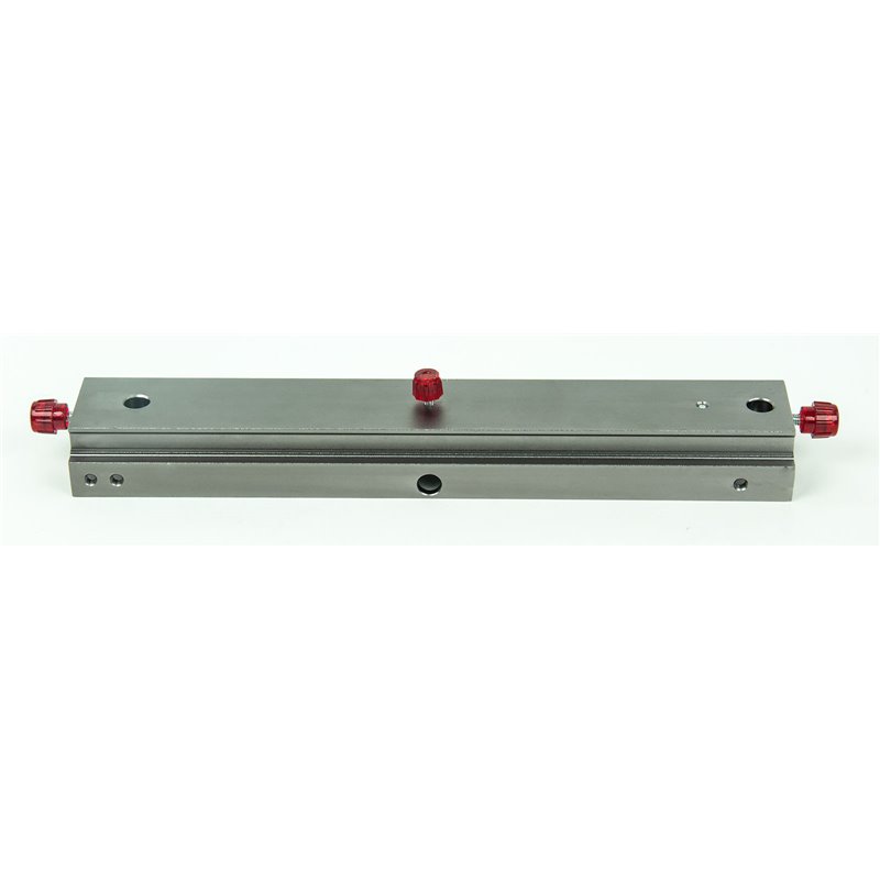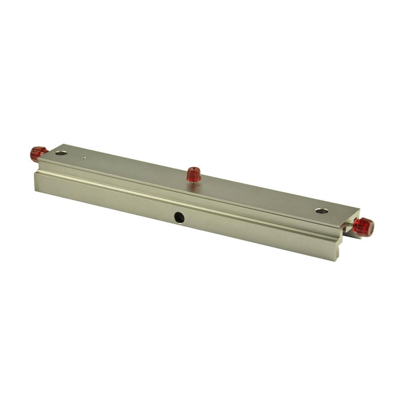 Verwendbar als Stativfuß, Stativschiene, Fahrbahn, Laufschiene oder optische Bank; von NTL entwickeltes Schienen-Sonderprofil mit zwei Doppelbohrungen zur stabilen Befestigung von Stativstangen oder sonstigem Rundmaterial bis 10 mm Durchmesser, an den Enden seitliche Schrauben zwecks Koppelung mehrerer Profile, durch Aufschieben von zwei Schienenklauen an den Enden oder das waagrechte Durchführen einer Stativstange wird aus der Stativschiene ein stabiler Stativfuß mit großer Standfläche, an der Oberseite können NTL - Reiter oder Schienenträger auf beliebigen Positionen fixiert werden, alle Schrauben mit abgerundeten Gewindeenden - gewährleisten einen optimalen Halt Material: Aluminium, Oberfläche eloxiertAbmessungen: 300 x 54 x 31 mm (ohne Schraubkappen)Masse: ca. 535 g