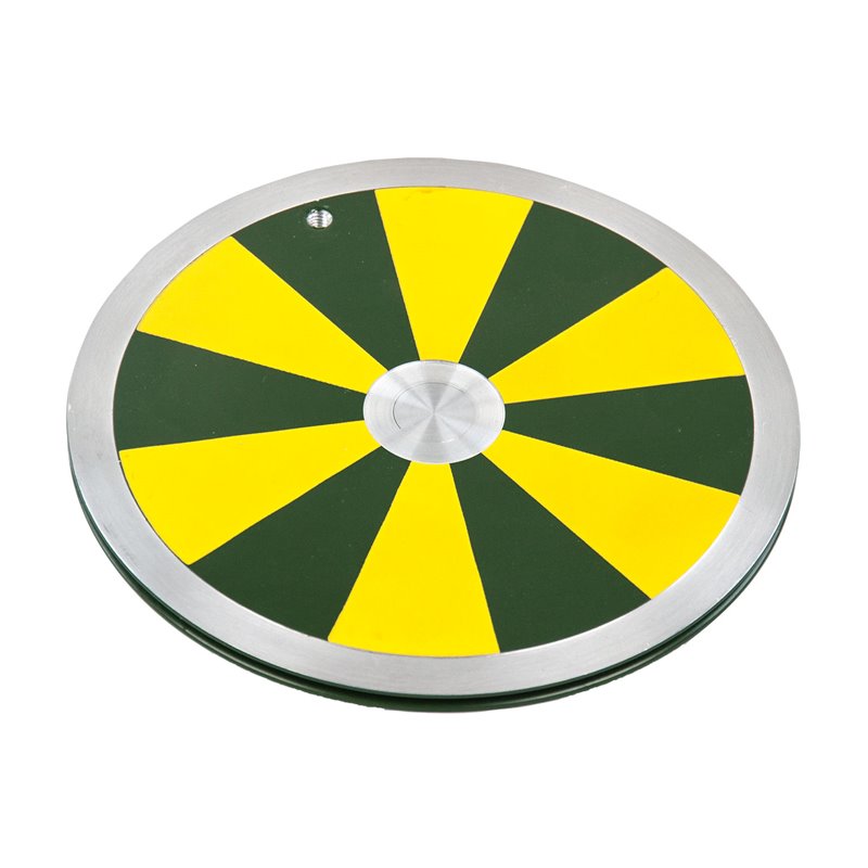 pulverbeschichtet grün mit aufgedruckten Kreissegmenten in gelber Farbe,