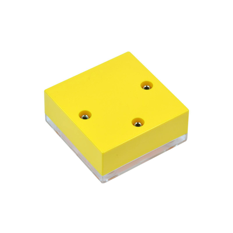 Magnetbaustein compact - System (MBC), Baustein leer mit drei Buchsen, zum eigenen Einbau von Bauteilen zur Elektrik oder Elektronik; robustes Kunststoffgehäuse (ABS) mit transparenter Bodenplatte Buchsen auch für 4-mm Sicherheitsstecker geeignetBodenplatte abnehmbar, mit inliegenden Neodymium MagnetenAbmessungen: 84 x 84 x 39 mmMasse: 83 g