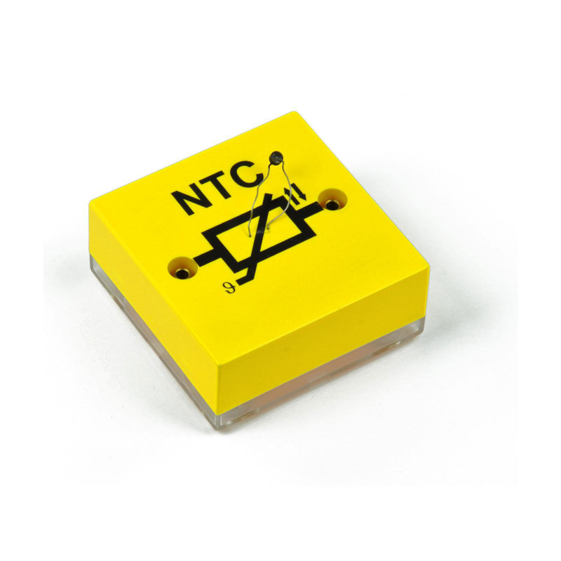 Magnetbaustein compact - System (MBC), Baustein NTC Widerstand (Negative Temperature Coefficient) Heißleiter; robustes Kunststoffgehäuse (ABS) mit transparenter Bodenplatte, der Bauteil ist daher gut sichtbar, jedoch ebenso vor mechanischen Schäden geschütztSchaltsymbol aufgedruckt (Siebdruck) zwei Buchsen, auch für 4-mm Sicherheitsstecker geeignetBodenplatte abnehmbar, mit inliegenden Neodymium MagnetenWiderstandswert: 4k7Temperatur: -55 ... +125 °CAbmessungen: 84 x 84 x 39 mmMasse: 76 g